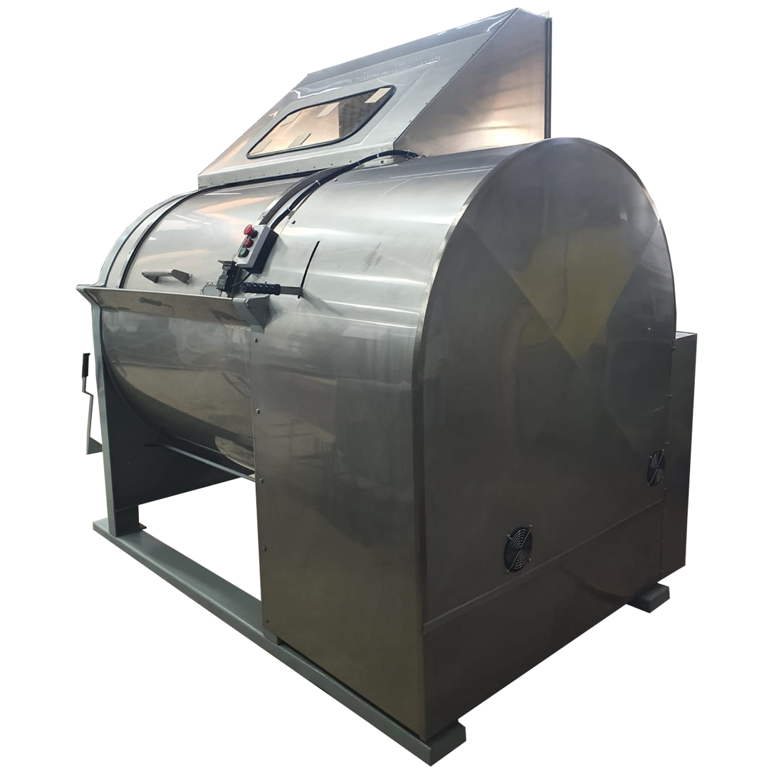 Máquina Industrial de lavar roupas em geral, tipo Esterilav – Hospitalar, para lavanderia hospitalar para ambiente separado com barreira. Construção metálica com base , estruturas e laterais em AÇO carbono SAE 1020, recebendo tratamento anticorrosivo em epóxi e acabamento com tinta PU de alta resistência, tambores interno e externo em chapa de AÇO INOXIDAVEL AISI 304, 02 (duas) portas com sistema corrediço em AÇO INOXIDÁVEL AISI 304 de grande abertura, sendo uma para roupas sujas, e outra (do lado oposto) para, após o término, retirar as roupas limpas. Tambor interno perfurado simetricamente com furos estampados e repuxados para fora, 04 (quatro) batedeiras de AÇO INOXIDAVEL AISI 304 em sentido longitudinal, mecanismo de transmissão sobre eixos de aço e mancais de rolamento.Gabinete de separação de ambiente posicionado sobre a própria máquina em AÇO INOXIDÁVEL AISI 304 com amplo visor para observação de movimento de ambos os lados devidamente vedado. Reversão através de temporizador digital com movimento suave, sem ruídos e sem golpes, Proteção do mecanismo para evitar quaisquer acidentes pessoais ou materiais. Pontos para alimentação de água de ampla bitola, válvula de deságue rápido e visor de nível de água. Equipado com dispositivo de bloqueio e segurança que impedem o funcionamento quando uma das portas estiver aberta, alarme para chamar a atenção do operador, painel de comando liga/desliga, temporizador digital (para programação do tempo de operação), 2 botões pulsar, (para posicionar as tampas do cesto), sendo uma para operação de carregamento e outra (do lado oposto) para descarregamento das roupas. 2 sinalizadores (um que indica que a máquina está ligada e outro que indica término da operação), motor elétrico,botão de emergência. NAS CAPACIDADES DE 16KG Á 200KG.